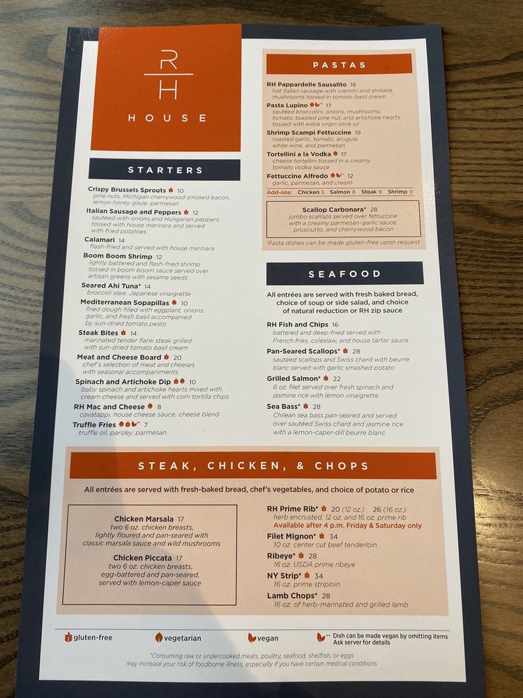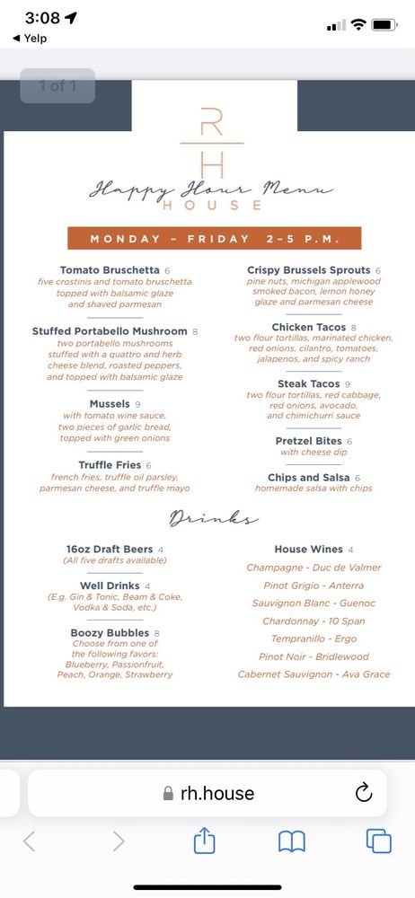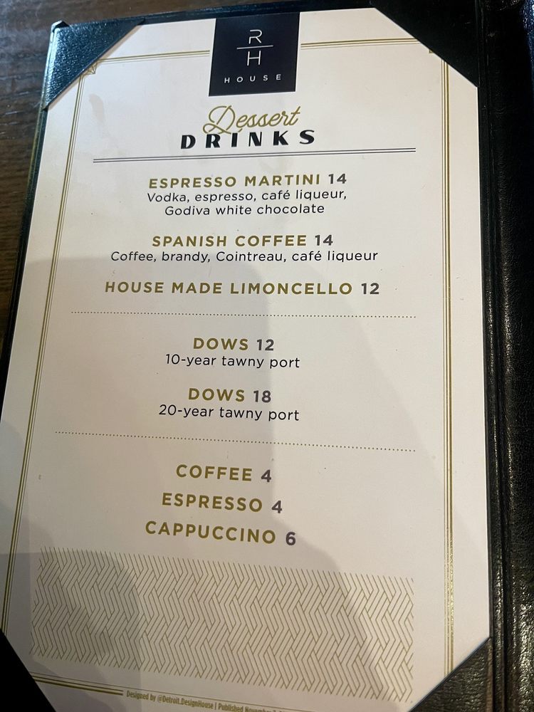 Welcome to RH House, a standout American restaurant located in Rochester Hills, Michigan. Offering a diverse menu featuring seafood dishes, vegan and vegetarian options, and a full bar with happy hour specials, RH House caters to all tastes and preferences. With a trendy and upscale atmosphere, this restaurant is perfect for dinner gatherings, with options for outdoor seating and private dining available. Customers rave about the exceptional food and service, highlighting dishes like the Chilean sea bass, Greek salad, and French Onion Soup. The steaks bites and espresso martinis are also fan favorites. Whether you're looking for a casual meal or a special occasion, RH House provides a memorable dining experience that will leave you coming back for more.